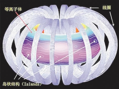 核聚變的燃料是氘和氚,在自然界的存量近于無限。聚變產生巨量能源時幾乎不會有污染物,也無放射性核廢料,是目前已知的可最終解決人類能源和環境問題的最重要的途徑之一。上世紀30年代,核聚變的原理就被提出來,但是產生可控核聚變需要的條件非常苛刻。我們知道,太陽中心溫度可達1500萬攝氏度,再加上巨大的壓力,使核聚變能夠進行。地球上,人類所能獲得的壓力條件有限,只能通過將溫度提高至上億度來彌補。而如此高的溫度沒有任何一種固體物質能承受,只能靠強大的磁場來約束,由此產生了磁約束核聚變。而產生強大磁場,進行磁約束核聚變的反應設備就是托卡馬克裝置(Tokamak)。其中央是一個環形的真空室,外面纏繞著線圈。在通電的時候,托卡馬克裝置的內部會產生巨大的螺旋型磁場,將其中的等離子體加熱到很高的溫度,以達到核聚變的目的。第一代托卡馬克裝置由蘇聯科學家阿齊莫維齊等人在20世紀50年代發明。
