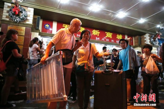 9月15日,顧客在天意商城門口休息。當日,商戶在北京天意商城甩賣商品,吸引大批顧客搶購。天意商城是北京規模最大的小商品批發兼零售市場,為疏解北京非首都功能,天意商城將于9月16日關門停業。中新社記者 盛佳鵬 攝