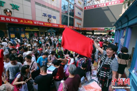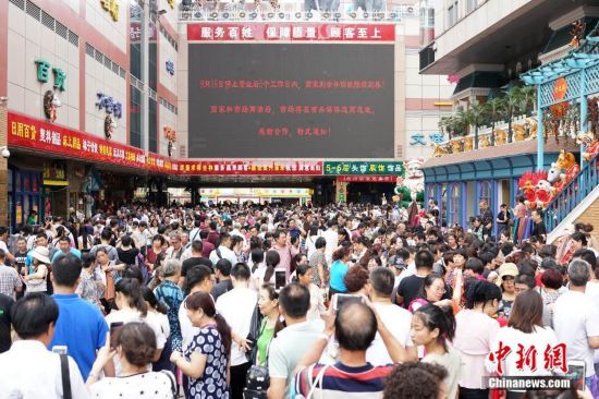 9月15日,市民齊聚天意批發市場中購物。天意商城是北京規模最大的小商品批發兼零售市場,為疏解北京非首都功能,天意商城將于本月16日關門停業。中新社記者 韓海丹 攝