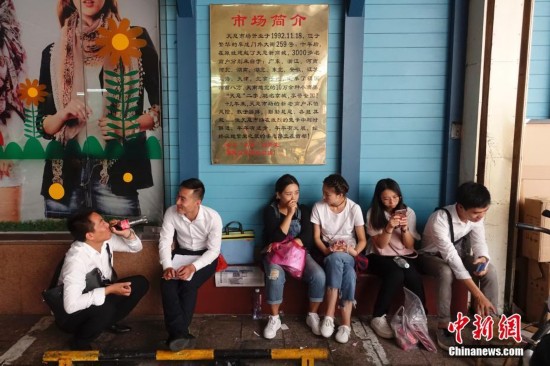 9月15日,幾位年輕人聚集在天意市場簡介銘牌下休息。當日,自1992年開業至今的北京天意市場迎來其在北京西城阜外大街營業的最后一日,商家趁機“瘋狂甩貨”,大批北京民眾也紛至沓來。這里曾是北京著名的小商品商城,聚集了數千家商戶。為疏解北京非首都功能,天意商城將于本月16日關門停業。中新社記者 崔楠 攝