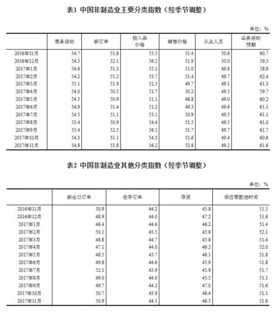 人民網北京11月30日電 據國家統計局網站消息,2017年11月份,中國非制造業商務活動指數為54.8%,比上月上升0.5個百分點,持續位于擴張區間,非制造業延續平穩較快的增長態勢,增速有所加快。
