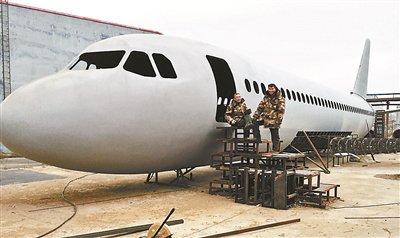 北青報記者在這則視頻中看到,在一個院子里,幾個工人圍繞著一架初具雛形的 " 空客 A320" 飛機忙碌,從視頻中看,這架 " 飛機 " 外觀很壯觀。朱躍在視頻中介紹,自己從小就喜歡飛機,因為買不起飛機就想造一架。這個飛機的機長 37.84 米、寬 36 米、高 12 米,是按照空客 A320 飛機 1:1 制作的,目前已經用了 40 噸鐵,花費已經超過了 80 萬元。