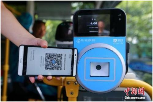 2016年8月16日,杭州民眾刷支付寶乘坐公交車(chē)。中新社發(fā) 許康平 攝