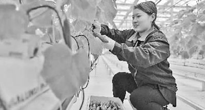 1月19日,河北省南和縣現代特色農業示范園區工人在智能溫室內采摘黃瓜。 新華社發