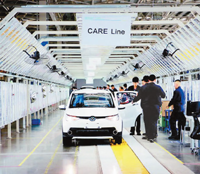 目前,該基地全年生產純電動乘用車80066輛,占全國新能源汽車產量的10%以上。其中,北汽新能源汽車2017年產能由過去的5萬輛提高到10萬輛。如今,投資40億元的基地二期正在加快推進,預計2018年8月底全部投產后,新能源汽車產量將突破20萬輛。