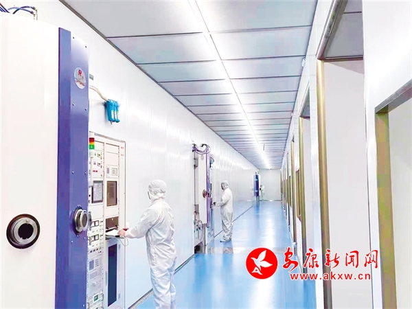 陜西軒意光電科技有限公司工作人員巡查生產情況。