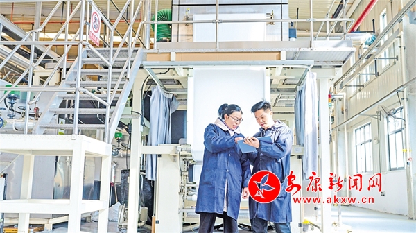 陜西鼎澈膜科技有限公司車間內,工作人員在核對生產數據。