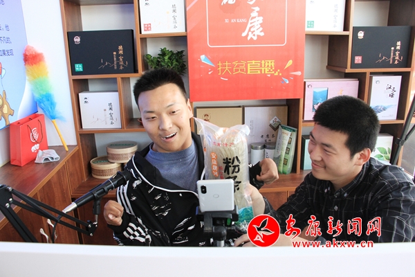 4月15日下午,記者一行來到漢濱區互聯網產業園時,殘疾青年孫陽正在映客直播平臺用詼諧幽默的語言和粉絲互動,介紹著蜂蜜、粉條等農產品的優勢。不久后,手機那頭的網友們紛紛下單,僅僅幾個小時成交了數單生意。