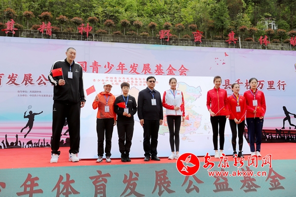 郭美薦在致辭中指出,“希望工程——百縣千校萬里行”活動,以紅軍二萬五千里長征路線為主軸,發動沿線及周邊的100個縣、1000所學校、50萬名學生,通過營養提升、裝備改善、軍體訓練、紅色鑄魂、健康推廣等五大計劃,將紅色教育、軍事國防教育與體育鍛煉相結合,引導青少年樹立愛國主義和革命英雄主義的精神情懷,激發愛國熱情,鍛造健康的體魄和健全的人格。希望同學們在體育精神的感召之下,能夠成為擔負起中華民族偉大復興中國夢大量的建設者和接班人。