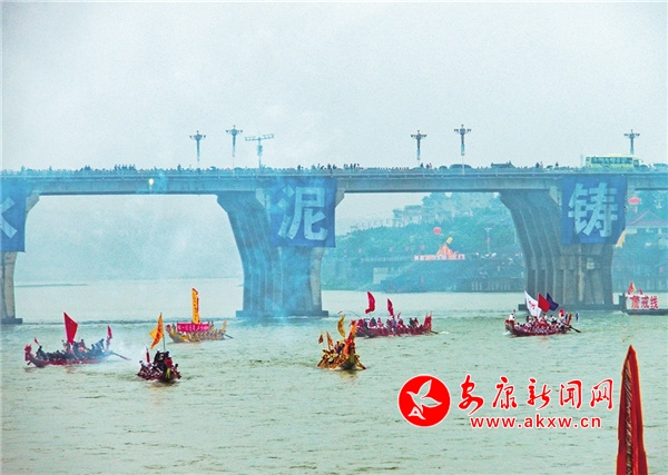 2009年,第九屆安康龍舟節(jié)上的龍舟競渡表演。 屈漢蓉 攝