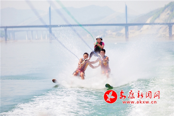 2011年,第十一屆安康龍舟節(jié)開幕式上,國家水上表演隊亮相漢江。邵向東 攝