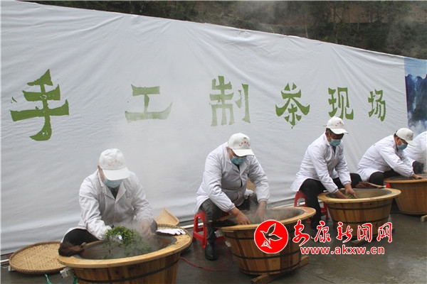 制茶人現(xiàn)場炒茶,介紹制茶的流程,突出嵐皋茶獨特制作工藝;茶藝師現(xiàn)場沖泡春茶,攤青、殺青、揉捻、做形、烘焙…新火試新茶,手工漸次綻現(xiàn),呈現(xiàn)千年古法傳承之景。qES安康新聞網(wǎng)