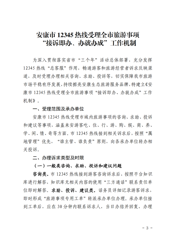 安康市12345熱線受理全市旅游事項(xiàng)“接訴即辦、辦就辦成”工作機(jī)制