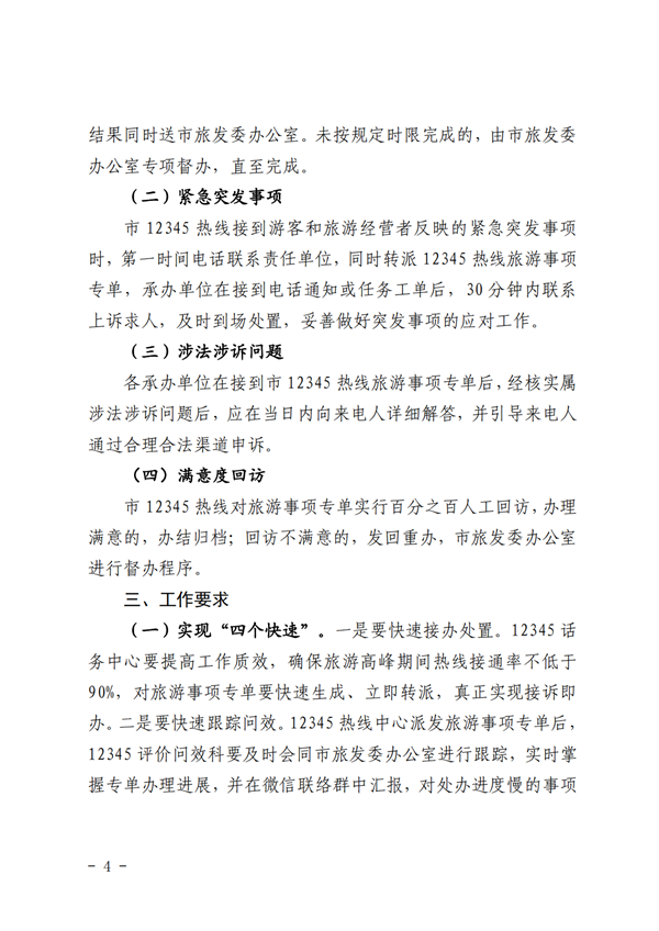 關(guān)于印發(fā)《12345 熱線受理全市旅游事項(xiàng)“接