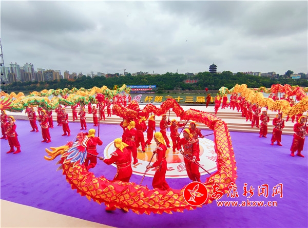 渾厚雄壯的“喊江調(diào)子”中,江面28艘龍舟抖擻精神、踏浪而來,江岸健身龍表演同步登場(chǎng),朝氣蓬勃。歌舞《安安康康鬧龍舟》、陜南民歌聯(lián)唱《漢水歡歌》、龍舟橫渡、健身操《活力安康》配合摩托艇“水上飛人”、傳統(tǒng)漢劇《漢江上傳唱著漢調(diào)二黃》等精彩節(jié)目輪番上演,搶鴨子摸鯉魚、民俗舞蹈《方寸之間》等安康特有民俗節(jié)目將現(xiàn)場(chǎng)氛圍推上一輪又一輪高潮。最終,開幕式在歌舞《幸福安康》中圓滿落下帷幕。