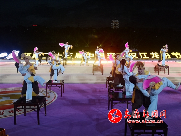 熠熠燈輝“靚”漢江,南北歌舞“響”安康。演出活動以絢麗奪目的燈光秀《華彩漢江》開場,漢江兩岸五光十色的燈光隨著音樂的節律不斷變換、舞動,使一江兩岸美輪美奐,《安安康康鬧龍舟》通過“毛絨玩具”的親切問候和載歌載舞,展現了安康新毛絨玩具產業蓬勃發展的動力和生機,具有地方特色的民族舞蹈《方寸之間》,將安康的傳統藝術與時代特色緊密結合,舞出了了安康人民在新時代表現出的新風貌,原汁原味的陜南陜北民歌對唱,讓粗狂和婉約在漢水之濱進行完美約會,歌舞、獨唱、漢劇、雜技《南木有禾》《荷韻漢江》《節日歡歌》《魅力安康》《環之舞》《端午安康》等節目,以獨特的唱腔、曼妙的舞姿和獨特的技藝全方位的展現了漢水傳統文化的魅力和安康人民的精神追求,熱情激昂的歌舞《端午安康》演繹出了漢水兒女對聚力建設幸福安康的美好祝愿和對未來幸福美好生活的向往。