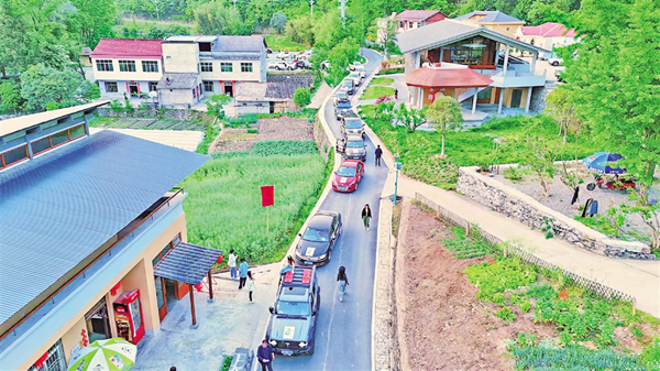 自駕車隊途經“朱鹮小村”石泉草池灣