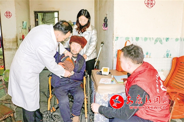 白河縣構朳鎮衛生院工作人員到構朳中心敬老院進行義診。方正 攝