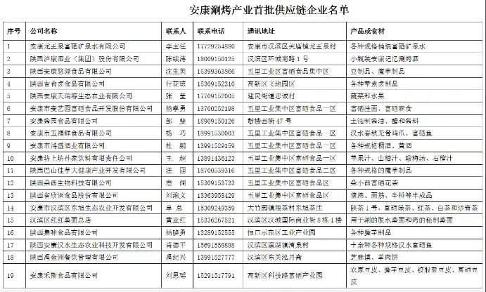 安康涮烤產(chǎn)業(yè)首批供應(yīng)鏈企業(yè)名單(排名不分先后)sZf安康新聞網(wǎng)