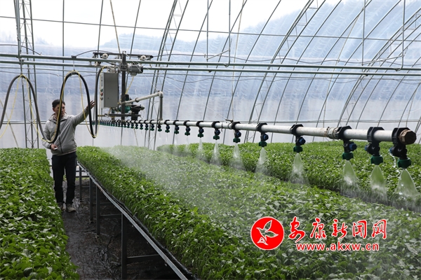 春日的安康市漢濱區建民街道天瑞塬生態園區生機盎然,智能溫室中的自動噴淋澆灌、APP自動管護、機械化播種,充分展現現代農業科技魅力。鄭時根 攝 VgR安康新聞網