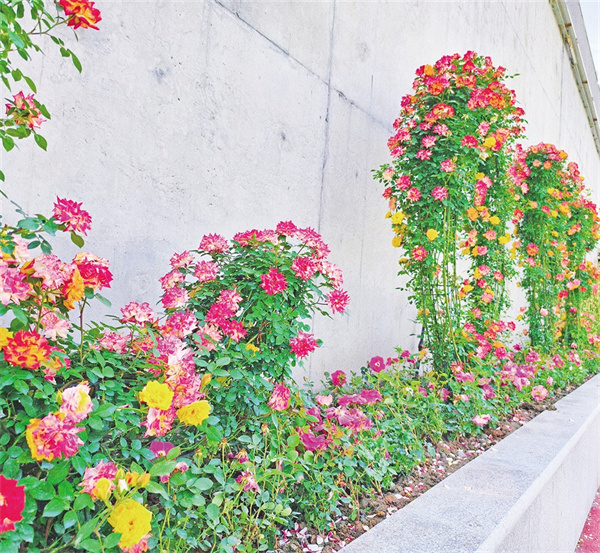 西壩防洪堤下月季長(zhǎng)廊 實(shí)習(xí)記者 張晶晶 攝