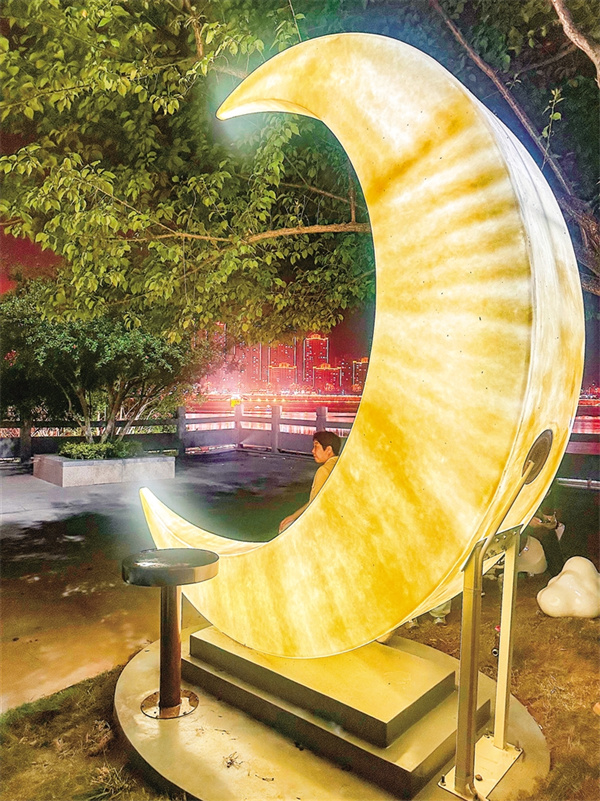 沿江兩岸,精心設(shè)計(jì)的景觀節(jié)點(diǎn)各具特色。漢寧門外江灘公園廣場(chǎng)的月亮藝術(shù)座椅成為熱門打卡點(diǎn);西壩防洪堤下140余米長(zhǎng)的月季長(zhǎng)廊中,20個(gè)品種6000余株月季競(jìng)相綻放,形成絢麗的花海景觀。“這些創(chuàng)意景觀不僅美化了城市環(huán)境,更讓游客感受到安康的獨(dú)特魅力。”城市公園管理科副科長(zhǎng)龔越介紹,月季長(zhǎng)廊還將繼續(xù)向西延伸至1.7公里。