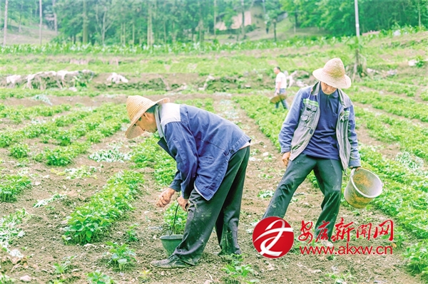 近日,雨后的嵐皋縣藺河鎮(zhèn)蔣家關(guān)村牡丹花育苗基地里,村民們正忙著給牡丹花苗除草、施肥。 邱苗 攝2N2安康新聞網(wǎng)