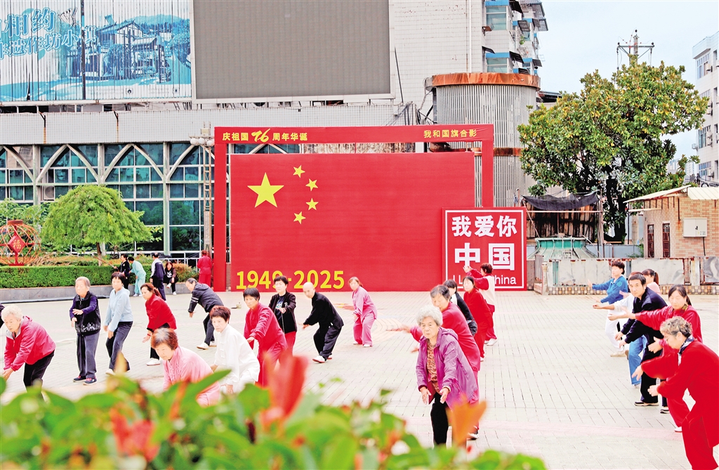 石泉縣在人民廣場、春潮廣場設置了“我和國旗合影”等主題拍照打卡點,營造了濃濃的節日氛圍。 許兵 攝wxP安康新聞網