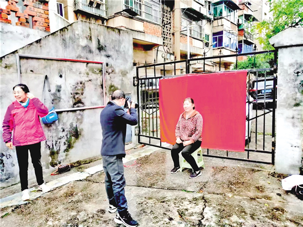 10月27日,漢濱區后張嶺社區黨委組織七十周歲以上的黨員舉辦重陽節主題活動。圖為現場給每個參加活動的黨員攝影留念。王振華 攝jhh安康新聞網