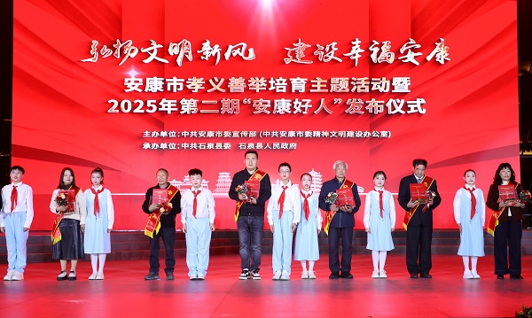 本次活動以“弘揚文明新風 建設幸福安康”為主題,由市委宣傳部主辦、石泉縣委和縣政府承辦,旨在深入學習貫徹黨的二十屆四中全會精神,扎實推進崇德向上幸福安康建設;顒蝇F場,通過播放典型人物短片、現場互動訪談等形式,生動再現了陳登發、高虎、黃壽琴等好人代表的感人事跡。市級領導及“中國好人”“陜西好人”等先進典型代表為28名新入選的“安康好人”頒發紀念證書;顒蝇F場同時發布了2025年安康市“新時代好少年”名單,24名青少年獲得殊榮。