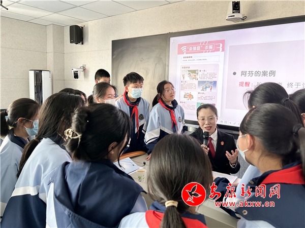 在你問我答間,同學們熟練地掌握了家長群里“臥底”、網絡游戲和短信里“陷阱”的辨別方法和防范措施,增強了課程的趣味性和參與度。此次宣講,張曄法官以案說法、以例釋法,有效提升師生及家長對電信網絡詐騙的“辨別力”和“免疫力”,以點帶面,廣泛輻射,筑牢預防電信網絡詐騙法治防火墻。