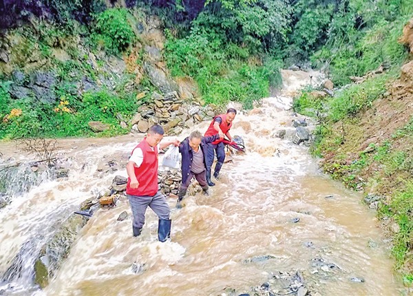 ⇑ 9月19日,石泉縣曾溪鎮境內普降大雨,駐村工作隊連同大溝村干部下沉一線排險搶險。文倩 丁浩哲 攝