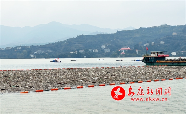10月15日,筆者跟隨打撈隊來到瀛湖鳥島,大量的漂浮物被圍攔在河灣附近,與主河道形成鮮明對比。打撈隊負責人袁曉林介紹:“因秋淋天氣,9月中下旬起,安康經歷十幾天的連陰雨,水位上漲,岸邊被淹沒的樹木、雜草就會在水面漂浮,影響水質和景觀。我們在景區鳥島、清泉村、湖心街、南溪、流水等地分段集中打撈,提高效率,不影響旅游和通航。”zRR安康新聞網
