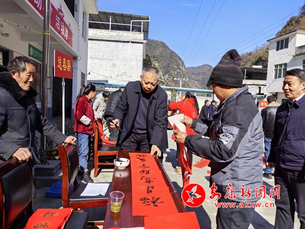 記者看到,小廣場上人聲鼎沸。牛羊肉、臘肉、木瓜黃酒等特色農產品豐富多樣,消費助農隊伍爭相購買。市公路局組織的書法愛好者,還為群眾現場免費書寫春聯200余幅,把黨和政府的溫暖送到群眾家門口,為即將來臨的春節增添了濃郁的喜慶氛圍。