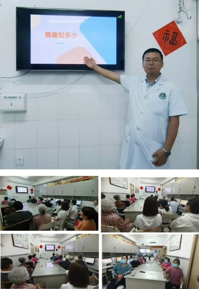 護(hù)士長馬運(yùn)俠以播放癌痛科普視頻的方式,通過臨床疼痛案例深入淺出地將癌痛防治知識(shí)分享給大家,現(xiàn)場與患者進(jìn)行了“話療”,消除他們的緊張情緒,幫助他們樹立抗擊癌痛的信心,科學(xué)的防癌抗癌,受到患者及家屬的一致好評(píng)。
