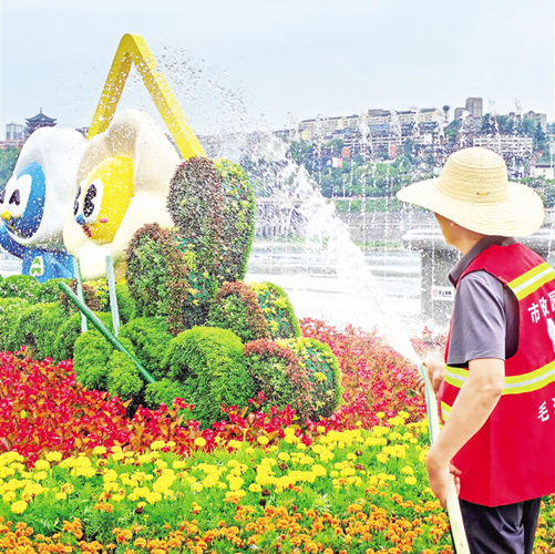 “我們每天投入7臺灑水車,日澆水量260余噸,并根據(jù)綠植苗木耐旱程度,加大澆水力度,延長澆水時間,應(yīng)澆盡澆,不留死角,確保澆水質(zhì)量。同時,對無澆灌系統(tǒng)覆蓋、車輛無法到達的綠地,由人工牽管澆灌,確保綠化澆灌全覆蓋,抗旱保綠出實效。”綠化抗旱防災(zāi)黨員突擊隊代表龔晨曦介紹。