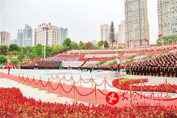 9月28日,安康市慶祝中華人民共和國成立75周年群眾大合唱活動(dòng)在親水廣場舉行。來自全市100多家單位的黨員干部和社區(qū)群眾組成的21支隊(duì)伍共4000余人激情豪邁,歌唱祖國。(記者 張喬 攝)5SU安康新聞網(wǎng)