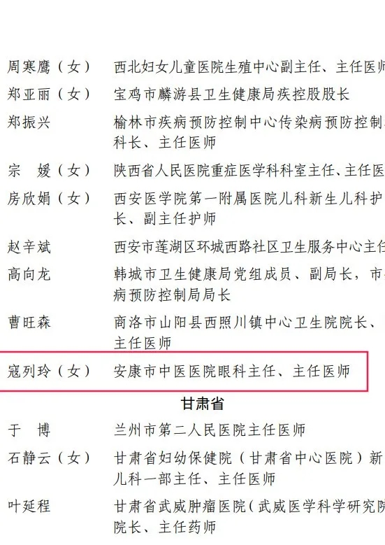 我市全國衛(wèi)生健康系統(tǒng)先進集體、先進工作者名單:f6r安康新聞網(wǎng)