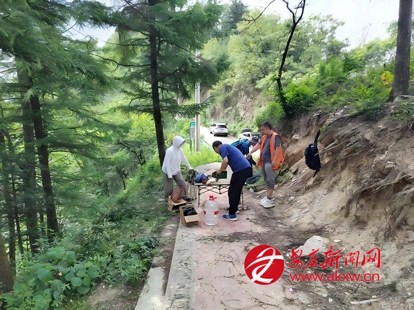 本網訊 近日,陜西省鳳凰山森林公園景區內,露營游客激增。為保障游客安全及景區秩序,森林公園志愿者開展定期巡邏,提醒游客林區安全用火、文明旅游。(胡波 彭超 攝)