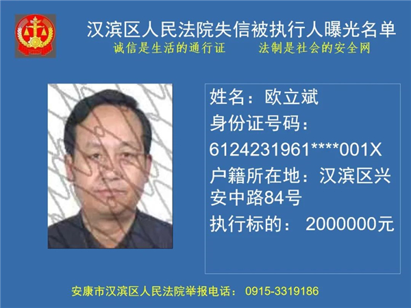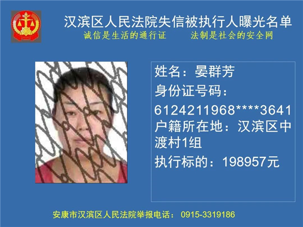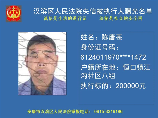 曝光失信 | 安康市漢濱區人民法院失信被執行人曝光名單(2022年第1期)