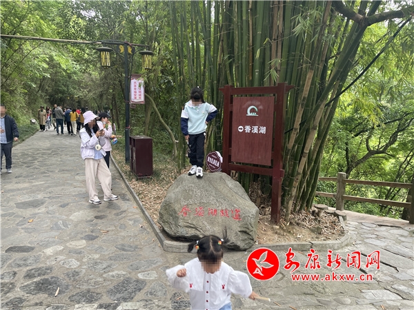 “樓閣云中建,竹木藏山巔。”“五一”期間,風景優美、距離城區較近的香溪洞風景區也迎來了“游客潮”。在眾多自覺遵守文明出行規則的游客中,一孩童隨意踩踏在景觀石頭上,和溫馨提示牌上的“愛護環境,文明出行”形成鮮明對比。kzD安康新聞網