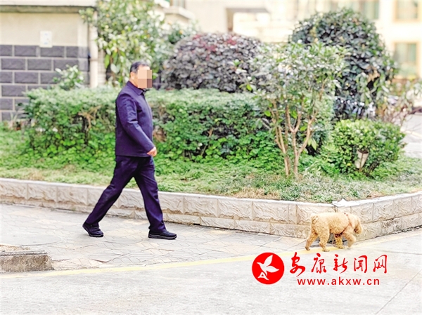 12月2日,有市民在某小區內不牽繩遛狗。鄭時根 攝……