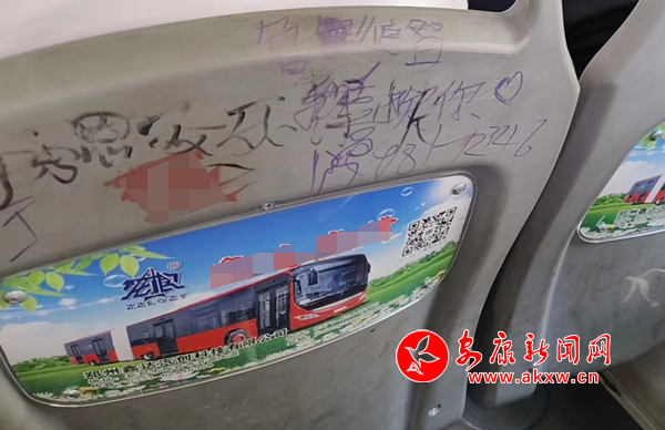 7月7日,筆者乘坐安康市城區7路公交車發現,公交座椅靠背慘遭“涂鴉”,內容不乏廣告標語、低俗粗鄙、不堪入目的語言,嚴重影響乘車心情。希望廣大乘客文明乘車,……