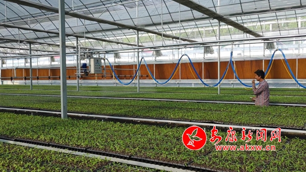 蔬菜育苗區,成千上萬顆種苗長勢喜人,卻只看到一個工人在輕推機械噴灑滴灌。“我們園區采用機械化滴灌技術。原來用噴壺話,10個人一整天的工作量,現在1個人2個小時就能全部完成。”忠誠村黨支部副書記吳斌算著賬,“借用現代科技力量,這種方式省水、節肥,省水在80%以上,節肥在70%以上,最大的優點在于噴灑均勻,根系發達,成活率非常高。”