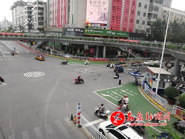 8月2日,記者在中心城區(qū)馬坎十字發(fā)現(xiàn)了道路新增綠色引導(dǎo)區(qū)域,記者從漢濱交警大隊(duì)了解到,目前城區(qū)除了馬坎十字之外,中心廣場十字、一橋橋南十字,東堤十字的三車等待區(qū)也在同步施劃中,警示車輛各行其道。