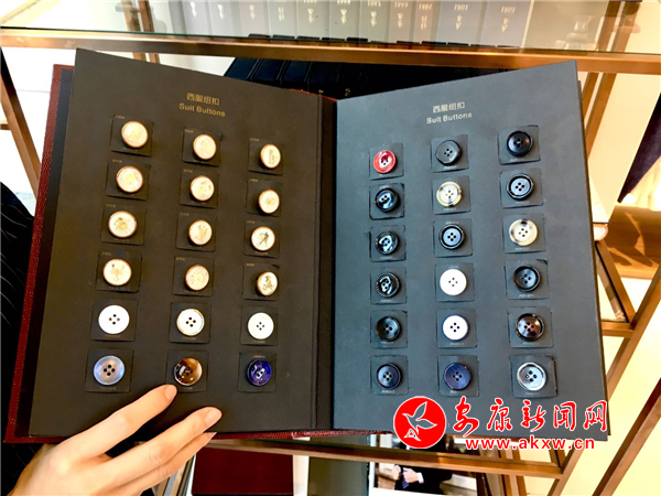 廖忠環展示的可供顧客挑選的紐扣樣品