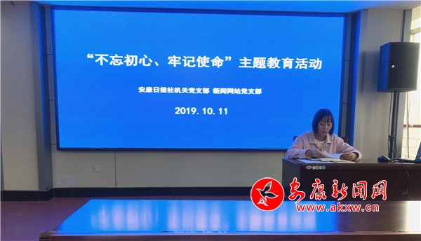 本網訊 (記者 郭倩)初心即情懷,使命乃擔當。初心表達價值追求,使命體現奮斗目標。10月11日上午,安康日報社機關支部與安康新聞網站支部聯合開展“不忘初心、牢記使命”主題教育活動,以“找回初心”為號召,以強化宗旨意識和理想信念為目的,立足崗位,“教、學”相融合,同步提升新聞采編業務專業技能和綜合業務能力,多樣形式開展好主題教育活動。