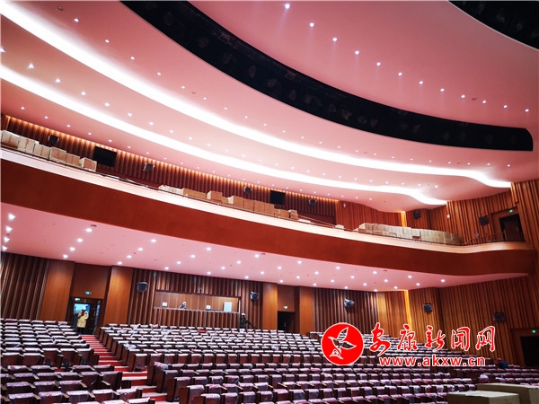 大廳右側(cè)為大劇場,左側(cè)為小劇場。大劇場的舞臺(tái)長33.6米,高24.2米,舞臺(tái)正前方配有一個(gè)長14.3米、寬13.3米的升降舞臺(tái),劇場內(nèi)可同時(shí)容納1200人觀看演出。小劇場舞臺(tái)長18.3米,高11.3米。共有座位307個(gè),內(nèi)部設(shè)施安裝已基本完成。AwH安康新聞網(wǎng)