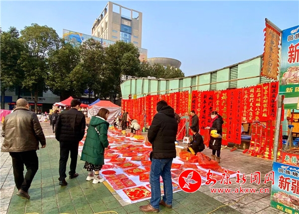 記者在白天鵝廣場(chǎng)看到,許多市民都在選購(gòu)春聯(lián)、燈籠、年貨,各式各樣的貨品吸引市民駐足選購(gòu)。在一方角落里,記者發(fā)現(xiàn)有書(shū)法家在為群眾現(xiàn)場(chǎng)寫(xiě)春聯(lián)。鋪開(kāi)紙張、倒上墨汁,筆走龍蛇,不一會(huì)功夫,一副副寫(xiě)滿祝福語(yǔ)的春聯(lián)就新鮮出爐了,拿到自己心儀春聯(lián)的群眾臉上洋溢著喜悅。VW7安康新聞網(wǎng)