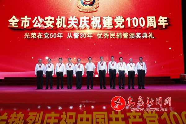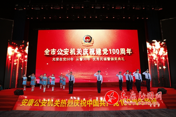 本次活動旨在全面展示全市公安隊伍教育整頓成果成效,大力弘揚公安英模精神,宣傳表彰隊伍中涌現(xiàn)出來的先進典型,凝聚警心、鼓舞士氣,激發(fā)廣大民警全力以赴做好保安全、護穩(wěn)定、抓改革、促發(fā)展各項工作熱情。活動分為安寧康泰、牢記使命、不忘初心三個篇章,一曲曲高昂的贊歌,一幕幕鮮活的畫面,一個個感人的故事,生動再現(xiàn)了中國共產(chǎn)黨建黨100年來,矢志踐行初心使命,一路披荊斬棘、篳路藍縷,錨定奮斗目標,創(chuàng)造輝煌開辟未來的壯麗詩篇;形象展示了安康公安機關(guān)和廣大民輔警牢記初心使命,服務(wù)中心大局,扎實推進黨史學習教育和公安隊伍教育整頓,忠誠履職,砥礪奮進的良好形象。活動中,與會領(lǐng)導(dǎo)向優(yōu)秀民輔警頒發(fā)了獎杯,向“光榮在黨50年”代表頒發(fā)了勛章,向“從警30年”代表頒發(fā)了紀念章。